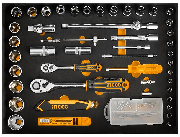 Набор инструментов 147 предметов INGCO HKTHP21471. Дорожный кейс представляет собой комплект оборудования для работы слесаря, автомеханика, электрика и других специалистов. состоит из четырех секций, позволяет разместить большой набор необходимых инструментов и приспособлений.