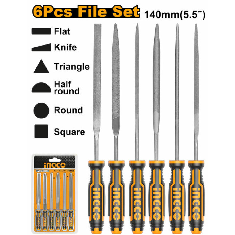 Набор надфилей 140 мм, 6 шт INGCO HKTF63 применяется для тонкой обработки изделий.