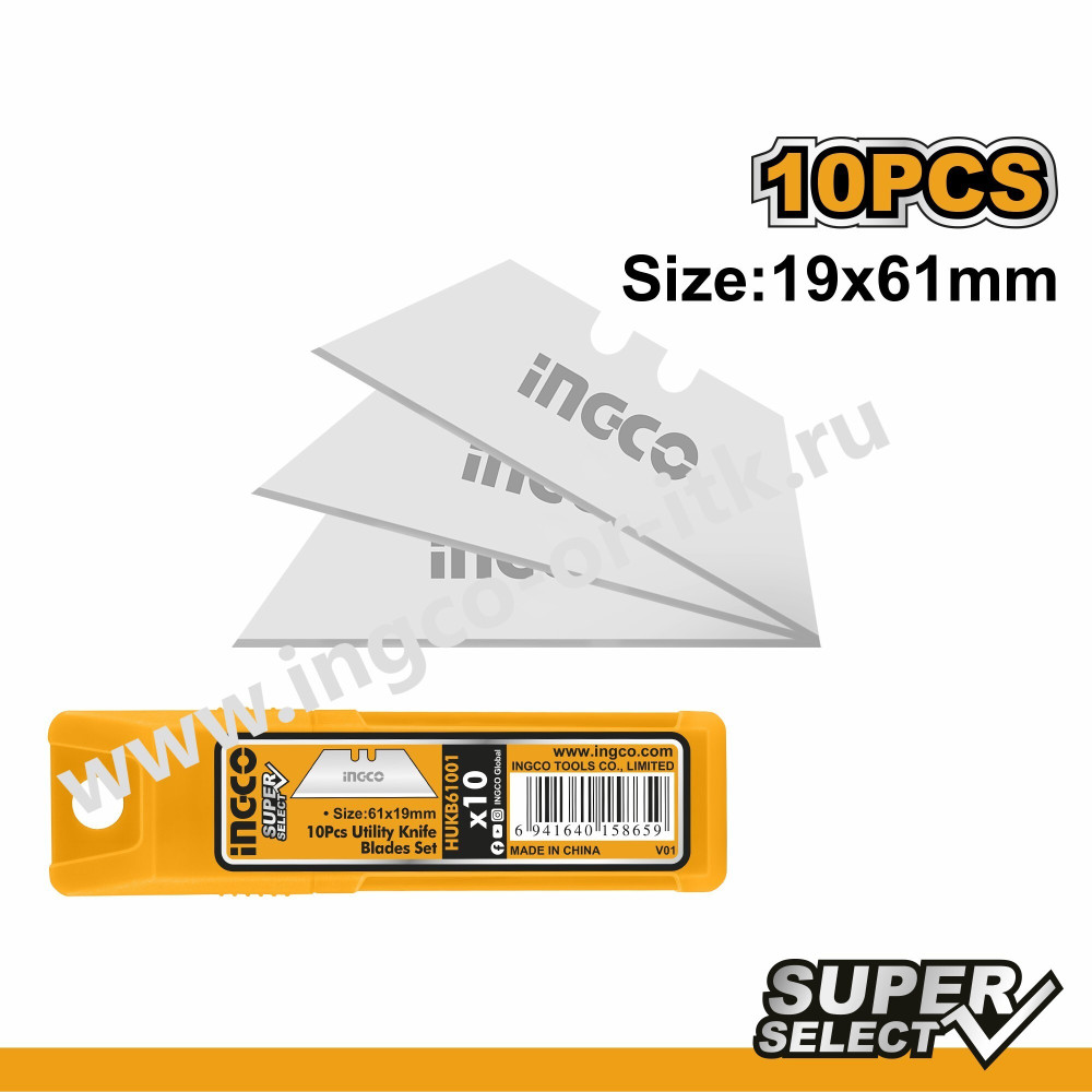 Лезвия трапециевидное 61х19 INGCO HUKB611 предназначены для использования совместно с канцелярскими и строительными ножами.