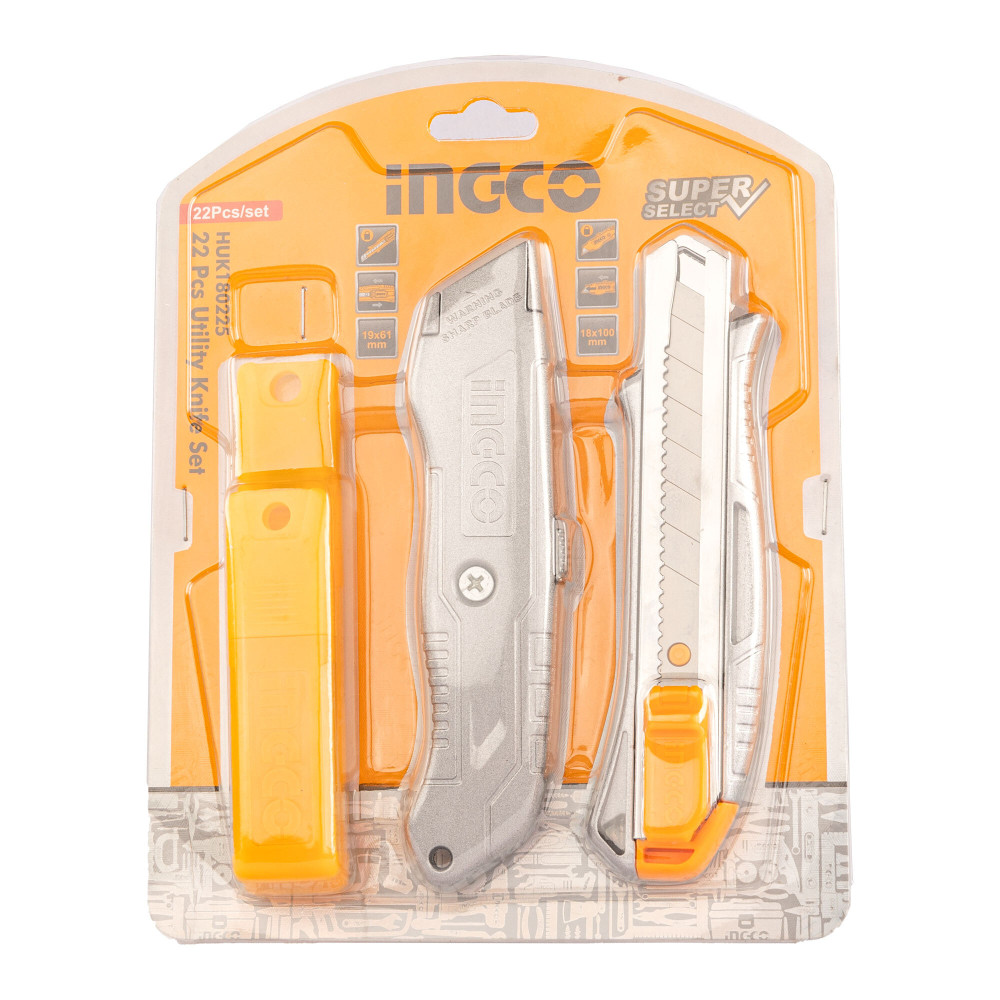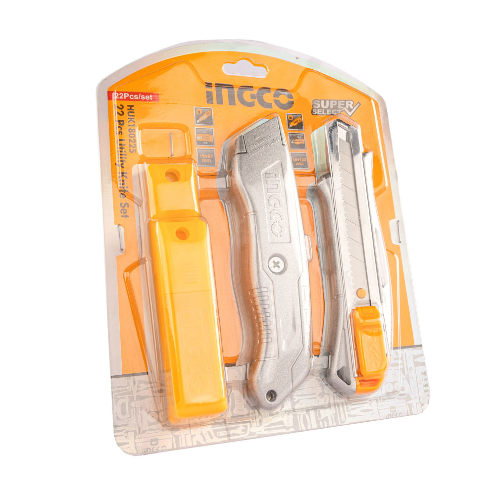 Набор канцелярских ножей из 2шт. INGCO HUK180225 используется для разрезания линолеума, обоев или картона.