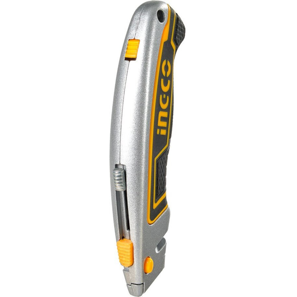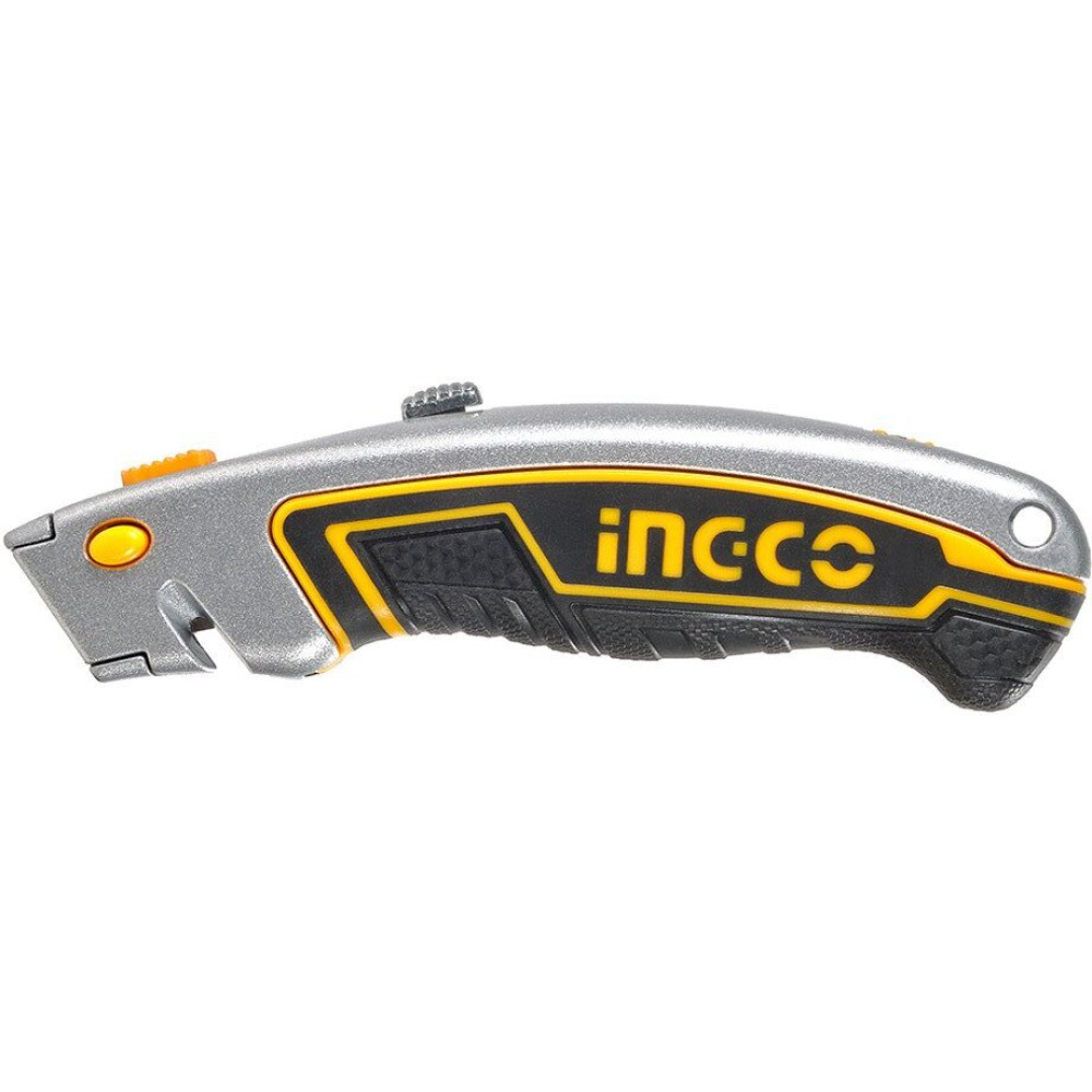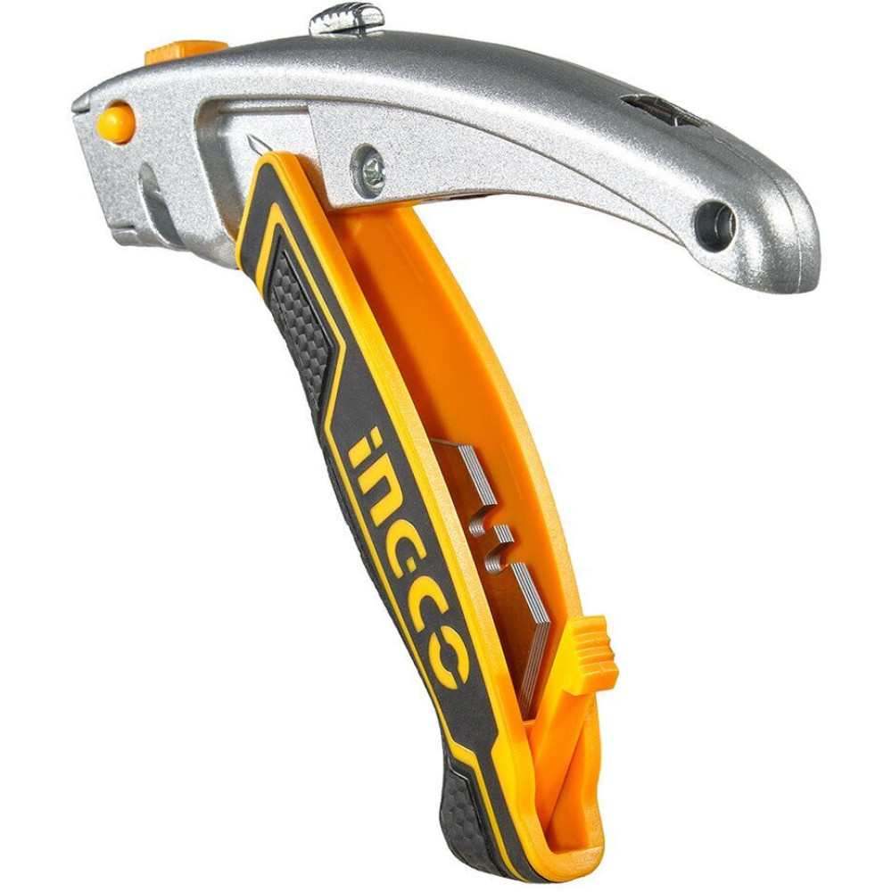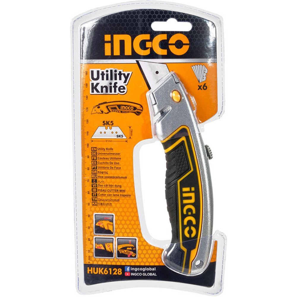 Нож универсальный 170 INGCO HUK6128 - это универсальный инструмент, имеющий широкую сферу применения - с помощью него можно быстро и аккуратно разрезать такие материалы, как линолеум, картон, обои и др.