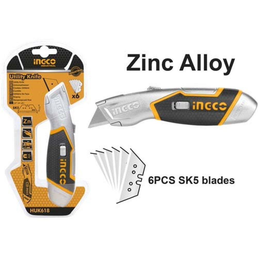 Нож с выдвижным лезвием INGCO HUK618 INDUSTRIAL- это универсальный инструмент, имеющий широкую сферу применения - с помощью него можно быстро и аккуратно разрезать такие материалы, как линолеум, картон, обои и др.