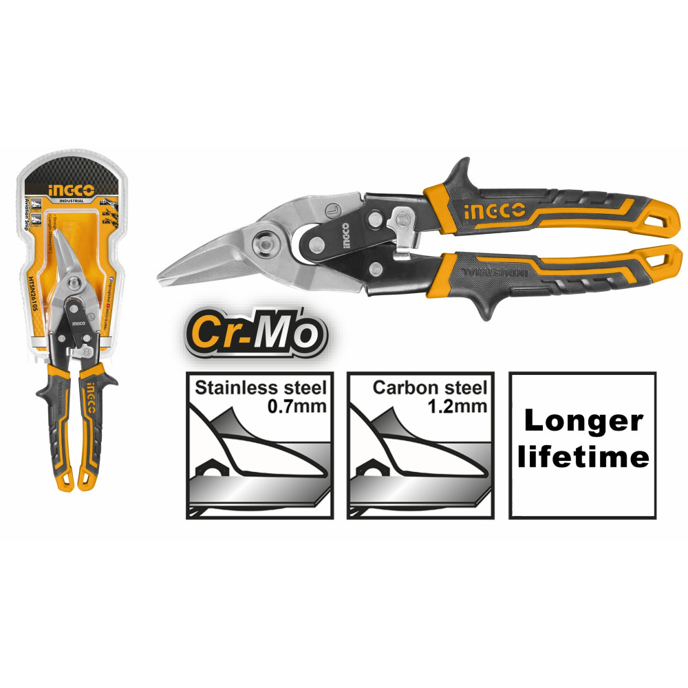 Универсальные ножницы по металлу правосторонние 250 мм INGCO HTSN2610R INDUSTRIAL -удобный ручной инструмент, который подойдет для разрезания различных материалов металла, линолеума, пластика, резины, картона.