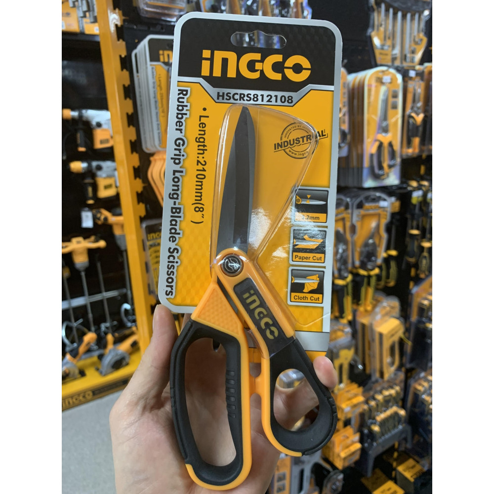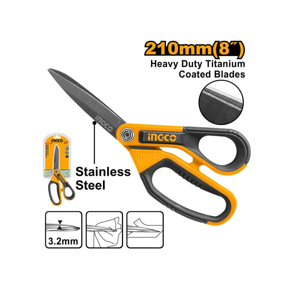 Ножницы усиленные 210 мм INGCO INDUSTRIAL HSCRS812108 это профессиональный инструмент, который подойдет для для ткани, пластика, картона..