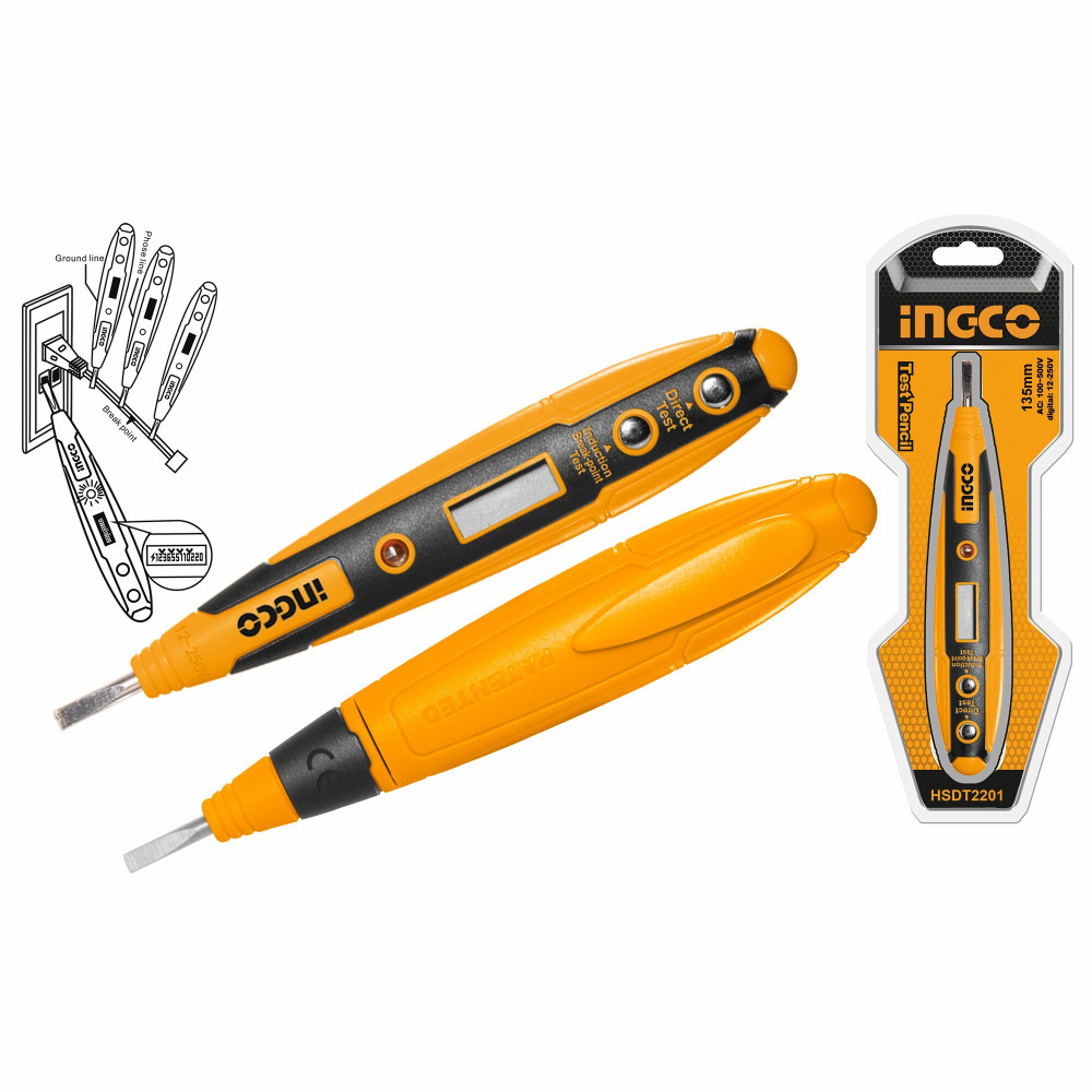 Индикаторная отвертка цифровая INGCO HSDT2201 - цифровой тестер для определения наличия электрического тока в электрических сетях контактным и бесконтактным способом, а также проверки целостности электрических цепей, электрических лампочек, предохранителей, проводов и наличия электромагнитного излучения.