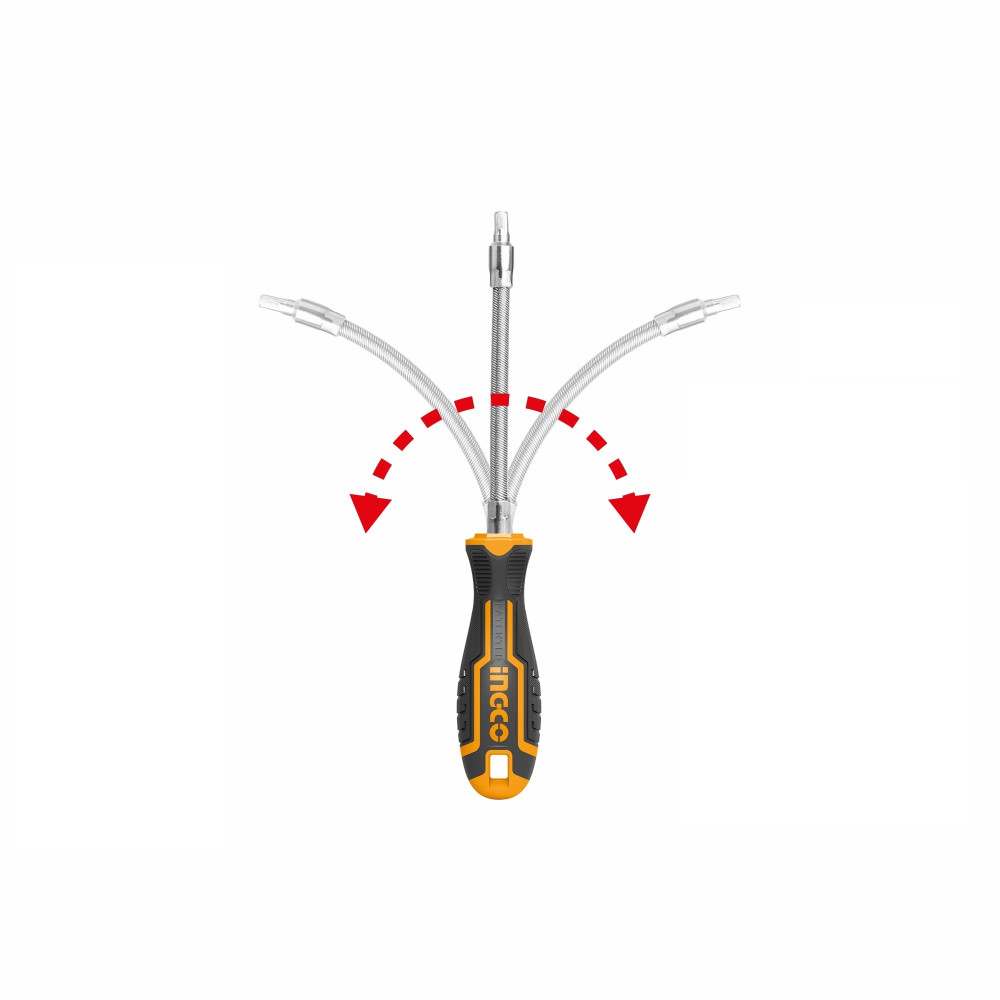 Отвертка с гибким стержнем и битами 12 шт. INGCO AKSDFL1208 применяется для работ с различными видами крепежа.