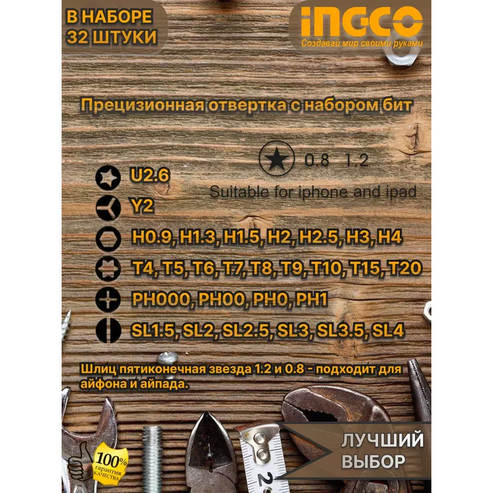 Прецизионная отвертка с набором бит 32 шт. INGCO HKSDB0348INDUSTRIAL точныйручной инструмент для выполнения мелких крепежных операций.