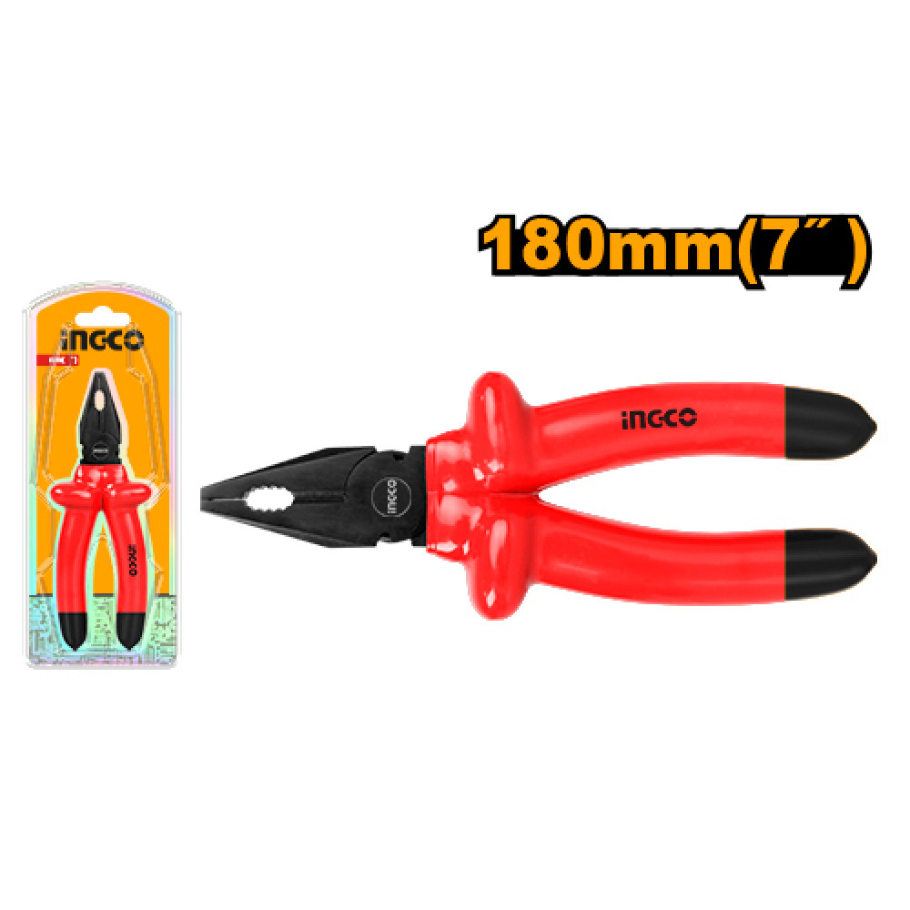 Диэлектрические плоскогубцы 180 мм INGCO HICP01180 - специализированный ручной инструмент,предназначенный для работы под высоким напряжением (до 1000 В переменного тока).