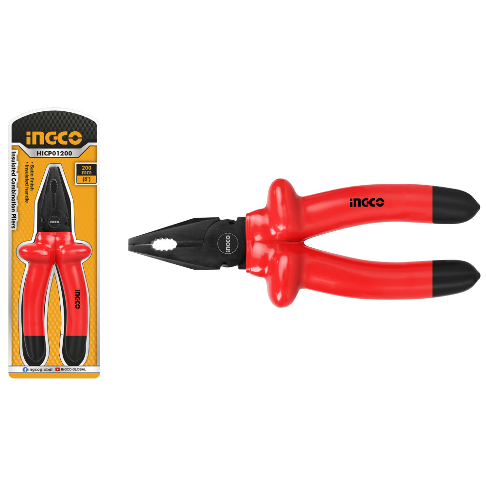 Диэлектрические плоскогубцы 200 мм INGCO HICP01200 - специализированный ручной инструмент,предназначенный для работы под высоким напряжением (до 1000 В переменного тока).