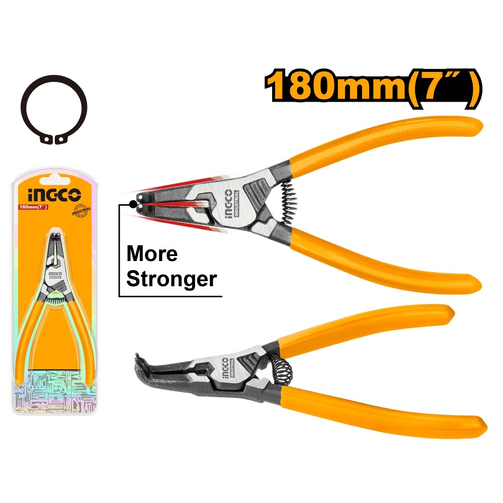 Съемник стопорных колец 180 мм изогнутые внешние INGCO INDUSTRIAL HCCP261802инструмент предназначен для работы со стопорными кольцами.