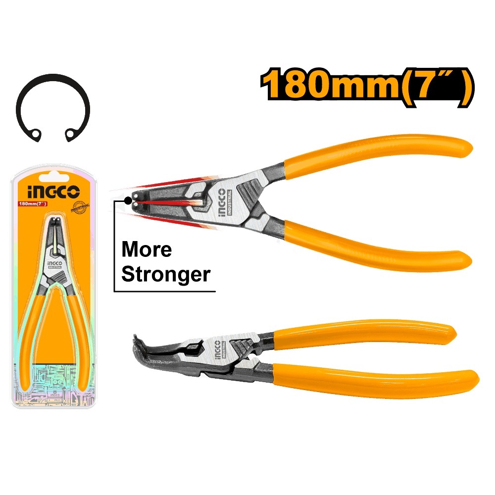 Съемник стопорных колец 180 мм изогнутые внутренние INGCO INDUSTRIAL HCCP261804инструмент предназначен для работы со стопорными кольцами.