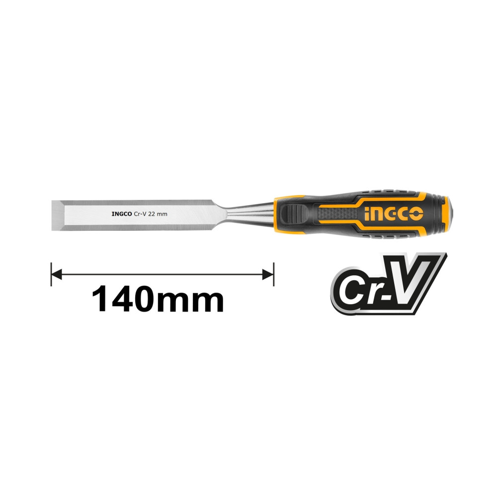 Стамеска 22x140 мм INGCO HWC0822 INDUSTRIALL ручной инструмент предназначенный для строгания или выборки углублений в древесине.