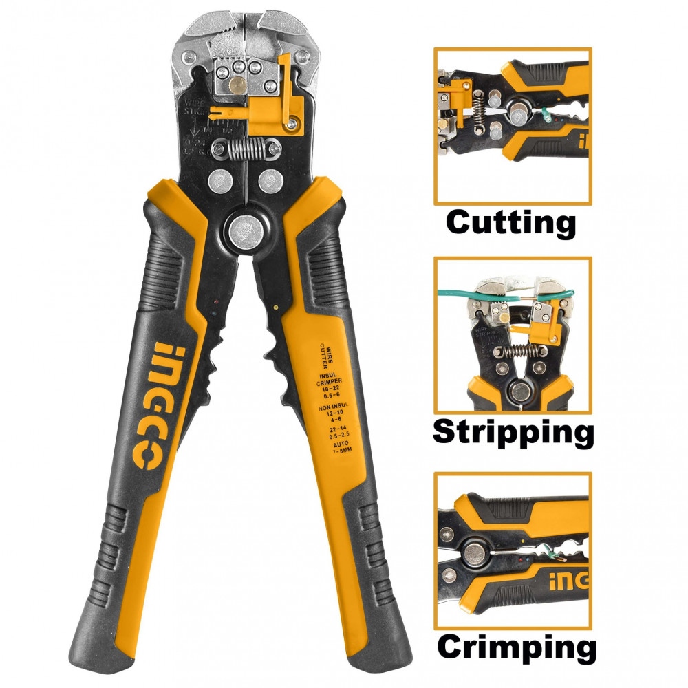 Автоматический стриппер многофункциональный INGCO HWSP102418 INDUSTRIAL используется для зачистки и обрезки проводов сечением от 0.2 до 6.0 мм. и снятия оболочки с плоских кабелей ВВГ-П, ПУНП.