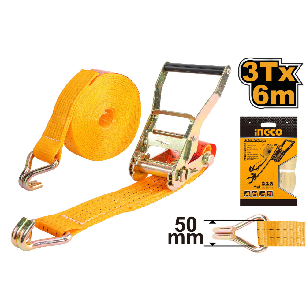 Стяжной ремень с храповикомINGCO HRSP361 применяется для фиксации грузов при транспортировке.
