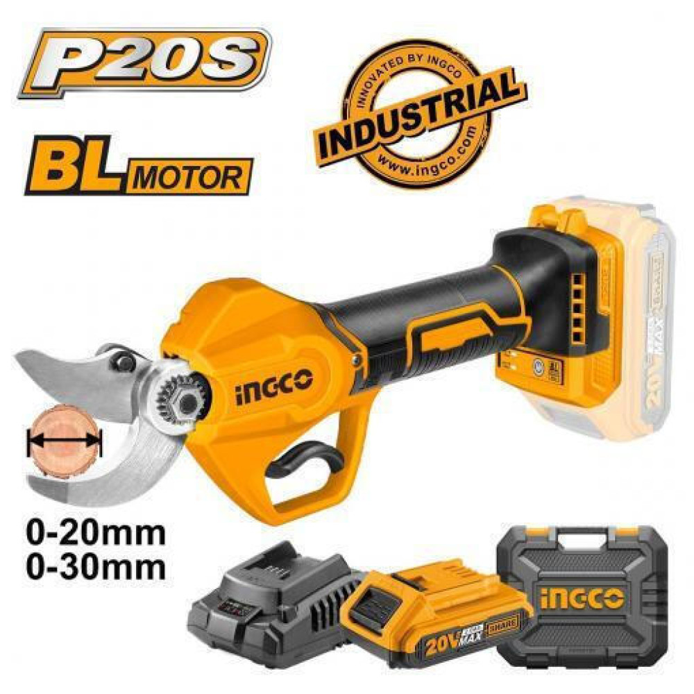 Аккумуляторный секатор 20B INGCO CSSLI203083 INDUSTRIAL отличный помощник в уходе за садовыми кустарниками и деревьями.