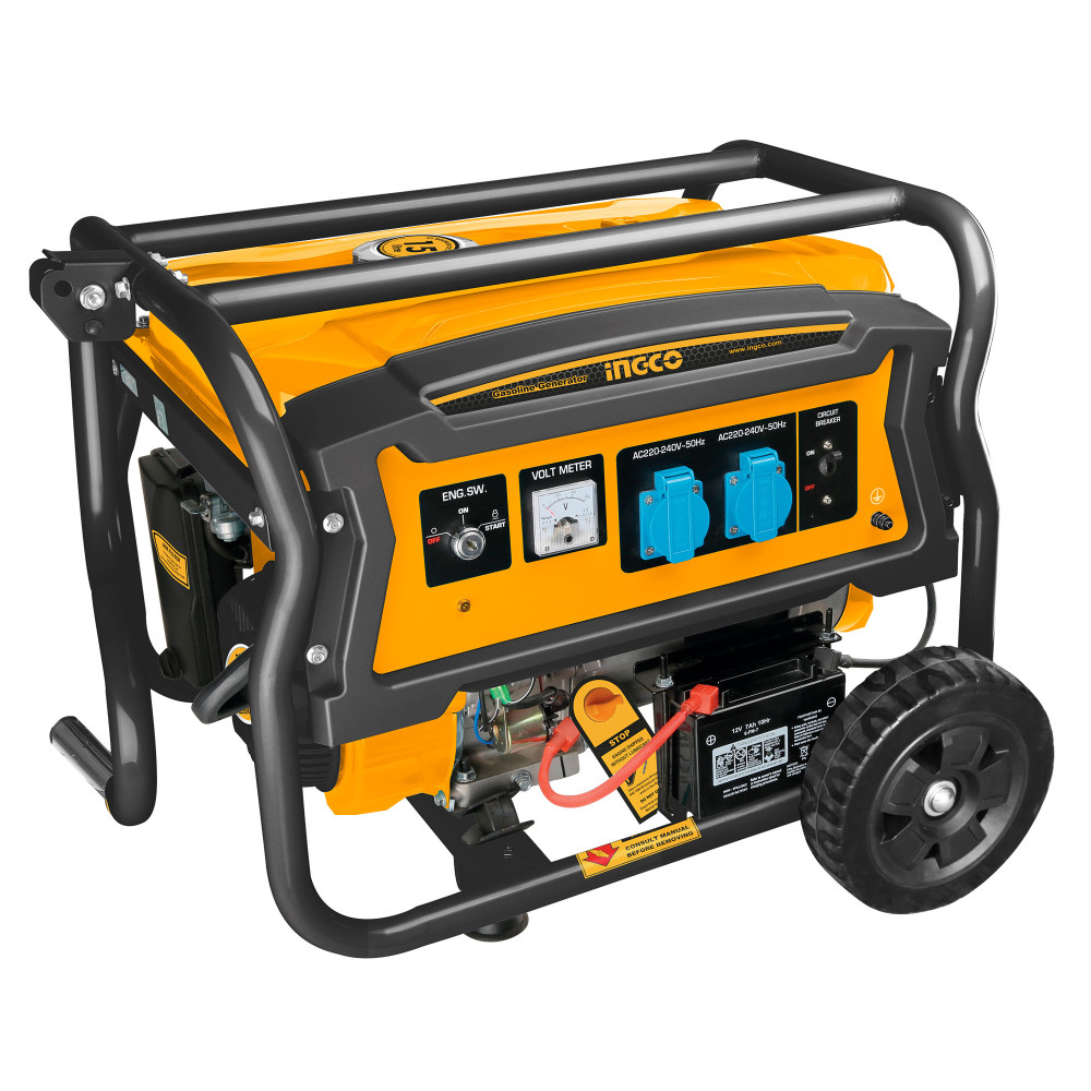 Бензиновый генератор 220В 3,5 кВт INGCO GE35006ES INDUSTRIAL рассчитан на использование в качестве аварийного или автономного источника электроэнергии для питания маломощных бытовых электроприборов и электроинструмента.
