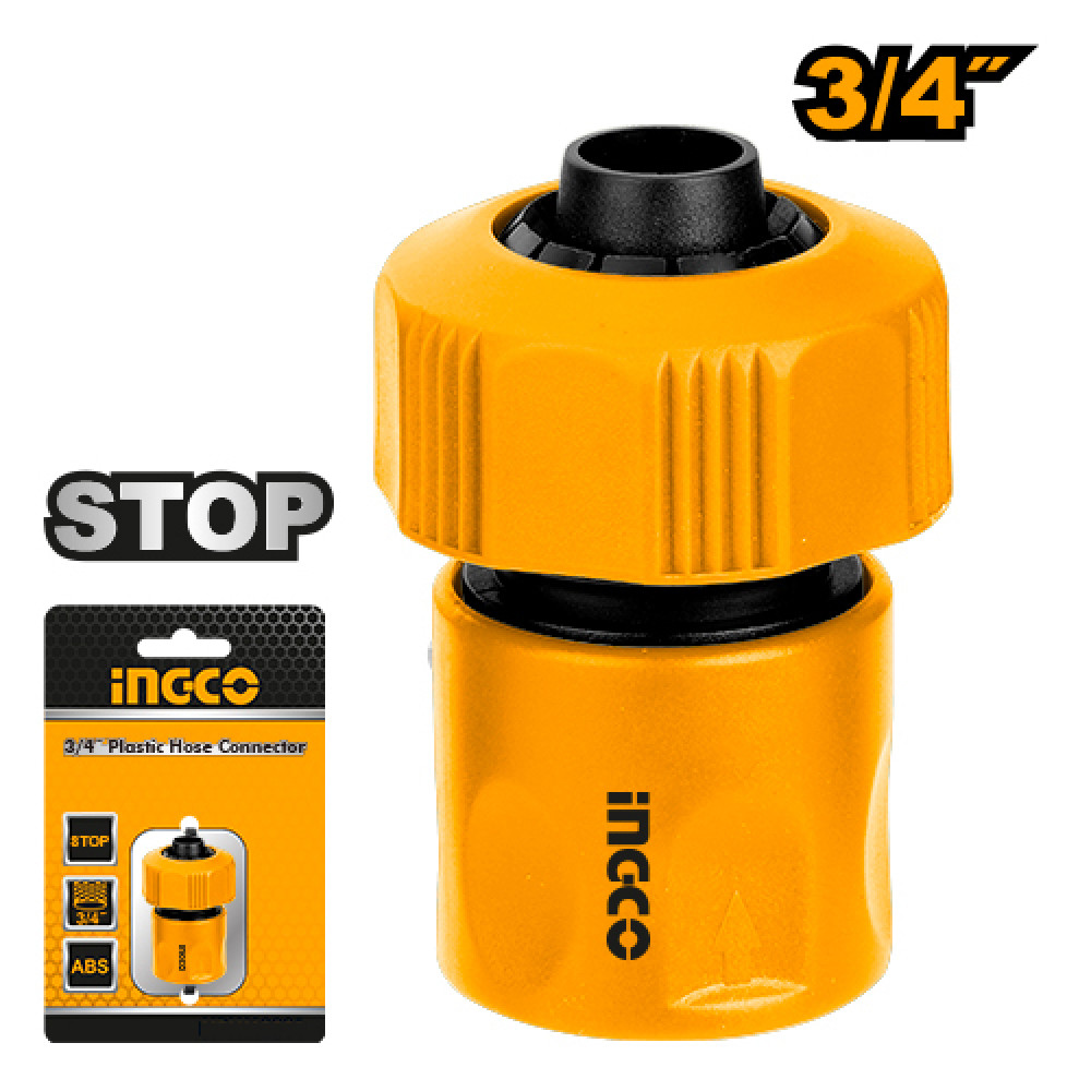 Соединитель пластмассовый быстросъемный для шланга 3/4" INGCO HHCS01341 необходим для соединения поливочных насадок сошлангом.