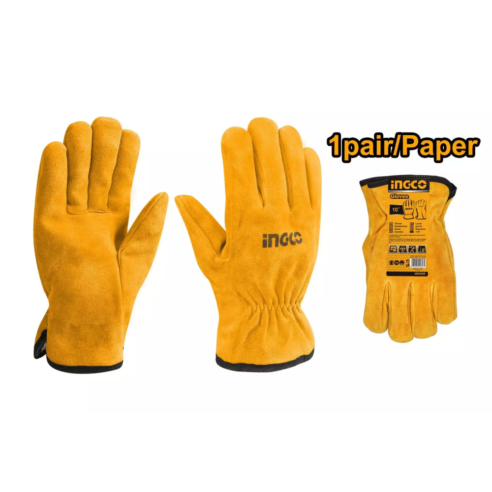 Перчатки замшевые спилковые с мягкой подкладкой INGCO HGVC02 используютсядля выполнения работ различной сложности: ремонтных работ, уборки, работ в лесной промышленности, строительных работ, строительно-конструкторских работ, складских работ, столярных работ, монтажных работ, транспортировочных работ, управления машин и механизмов, плотничных работ, работ в сфере услуг, операторами машин и механизмов.