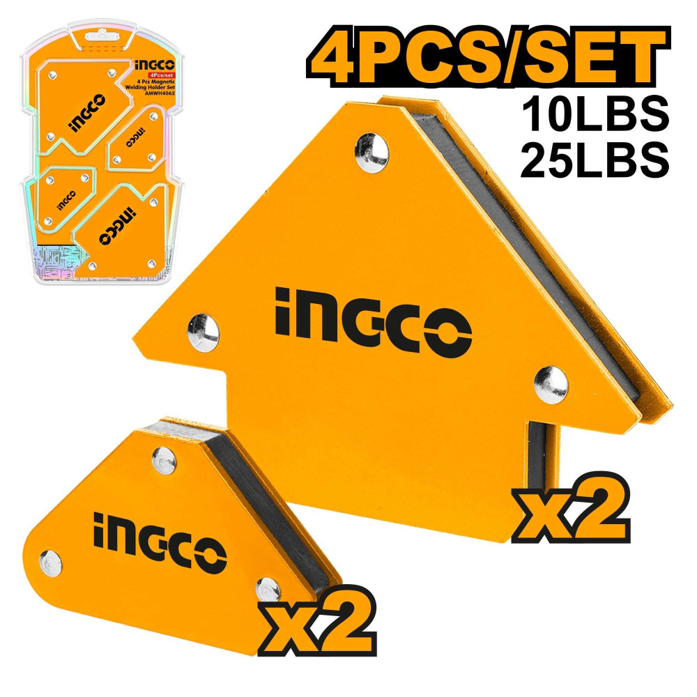 Набор угольников магнитных для сварки 4шт. INGCO AMWH4062 приспособление используется для фиксации металлических деталей при сварке, пайке или сборке конструкций.