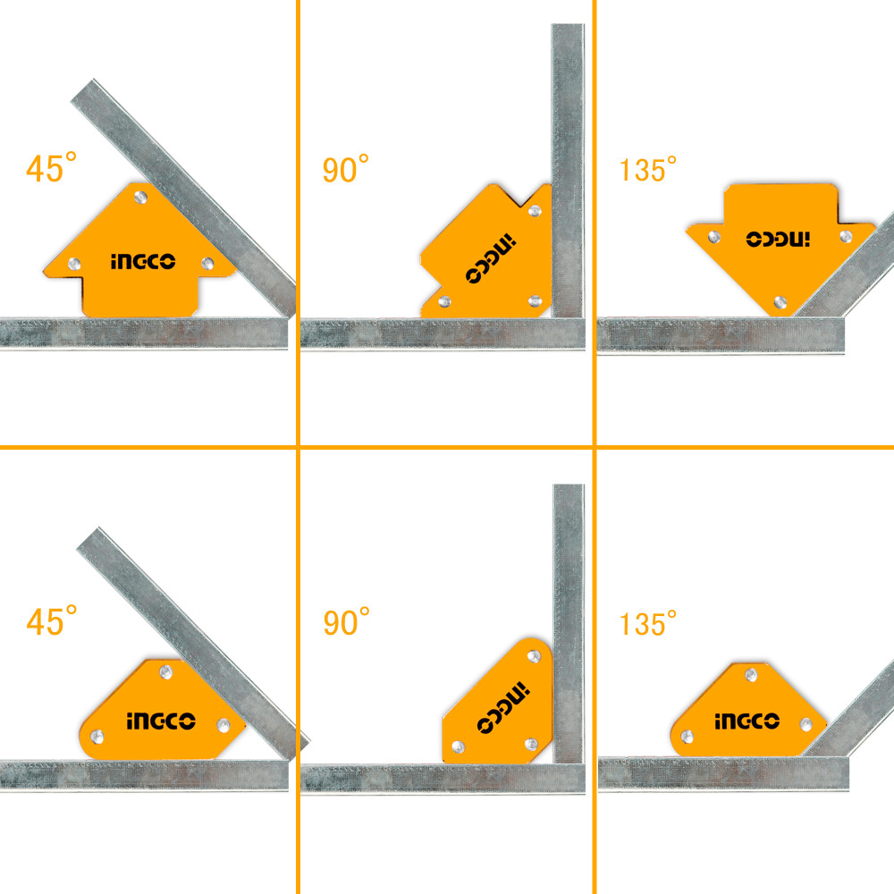Набор угольников магнитных для сварки Углы: 45 °, 90 °, 135 ° INGCO AMWH6001 приспособление используется для фиксации металлических деталей при сварке, пайке или сборке конструкций.