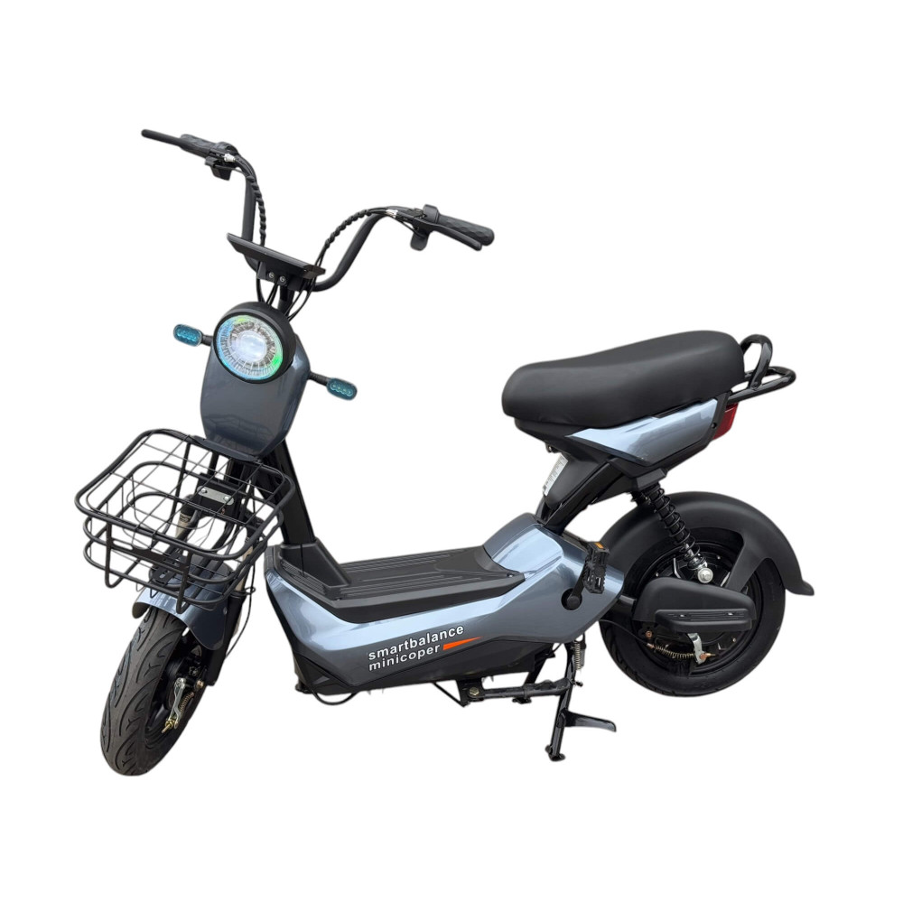 Купить электровелосипед SmartBalance Minicooper Летом 2023 года наша компания представила свой 1 электровелосипед под собственным брендом SmartBalance. Он успел покорить сердца огромного количества наших покупателей и без преувелечения стал самым популярным электровелосипедом в нашем магазине. Именно поэтому мы решили выпустить целую линйку электровелосипедов и электроскутеров под брендом SmartBalance, в которой найдётся электровелосипед для покупателя с любыми запросами. Представляем вашему вниманию электроскутер SmartBalance Minicooper - одна из самых интересных моделей в линейке SmartBalance. Миникупер сочетает в себе и электроскутер, и электровелосипед. Этот скутер имеет 2 места. У места для пассажира даже есть спинка. Спереди установлена вместительная металлическая корзина, поэтому этот электроскутер отлично подойдёт для поездок, например, на дачу. А большой запас аккумулятора позволит работать на нём в службе доставке. Смарт Баланс Миникупер имеет дизайн классического скутер, что выгодно отличает его от конкурентов. Основные характеристики SmartBalance Minicooper: Двигатель 240 Вт Скорость до 25 км/ч Аккумулятор 20 Ач Запас хода до 45 км Нагрузка до 150 кг Преимущества СмартБаланс Миникупер: Дизайн классического скутера Дополнительно место для пассажира со спинкой Очень большая и яркая фара Поворотники и задний стоп-сигнал Большая ёмкость аккумулятора