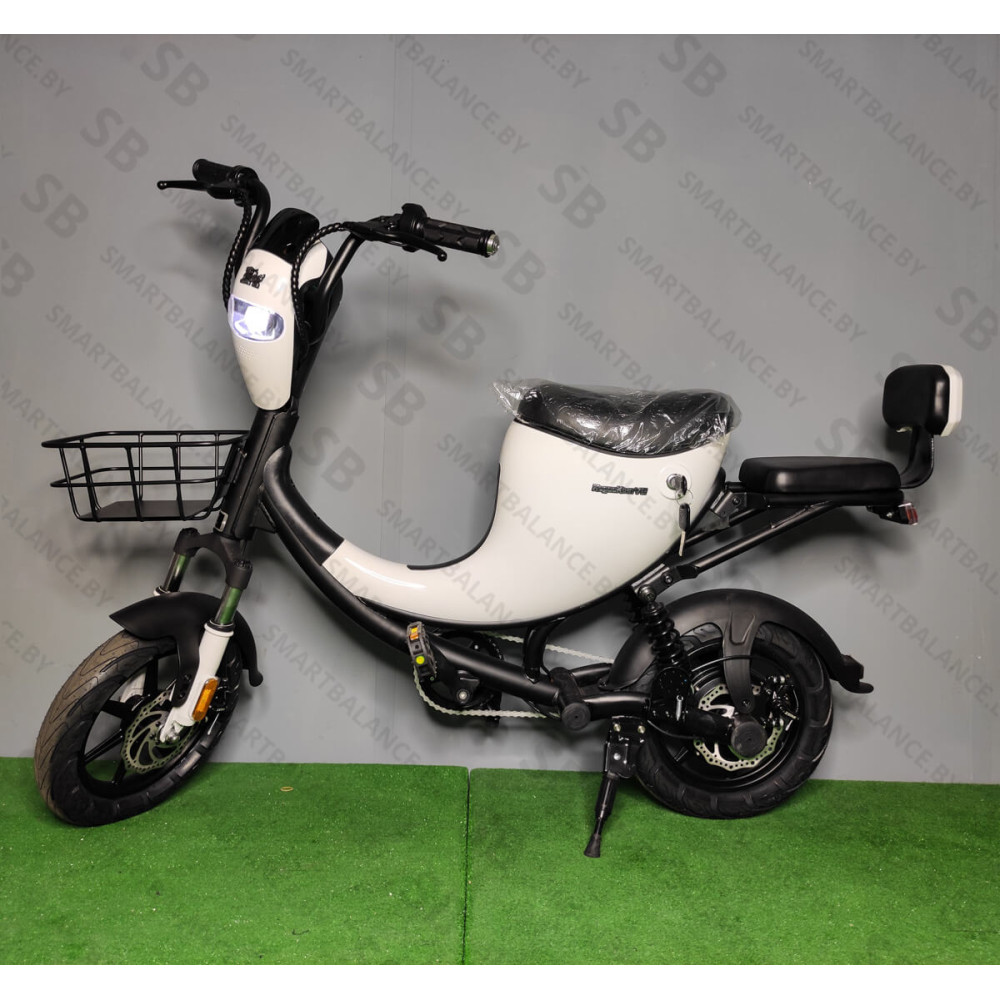 Купить электровелосипед Kugoo Kirin V2 в Минске и Беларуси Электровелосипед Kugoo Kirin V2 предназначен для городского и поселкового передвижения и предлагает своему пользователю уникальное решение - перевозка райдера вместе с пассажиром. На задней части устройства расположено дополнительное сиденье - оно является уникальной особенностью данного электросамоката, во всей линейке электросамокатов Kugoo. Благодаря двойному сиденью устройство напоминает портативный электрический скутер нового поколения. Мотор на 400 W достигает скорость до 30 км в час с райдером и пассажиром. Благодаря аккумулятору на 12.5 Ah на одном заряде путешественники могут проехать до 35 км. Удобство электросамоката Куго В2 На рулевой стойке Kugoo Kirin V2 расположен вместительный бокс для транспортировки грузов весом до 50 кг. Каждый взрослый человек мечтает о электрическом самокате с возможностью перевозки личных вещей, продуктов из магазина, хозяйственных товаров. Данная модель предназначена для практичных людей. Также по центру размещен огромный яркий светодиодный фонарь. Информативный дисплей Kugoo V2 Электросамокат Kugoo Kirin V2 удобен в управлении - все основные функции расположены на руле под большими пальцами: звуковой сигнал, включение освещения и поворотников, переключения скорости и привода. На большом цветном дисплее отображается скорость, пробег, заряд аккумулятора, также индикаторы включенного освещения и поворотников. Видеообзор велогибрида Kugoo Kirin V2